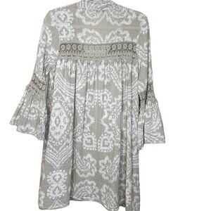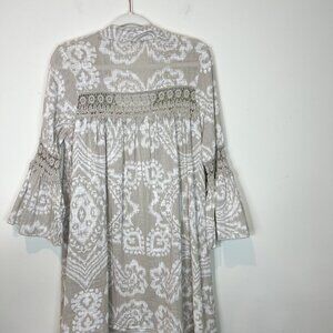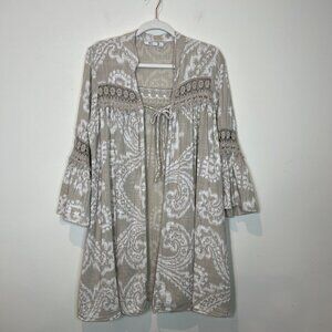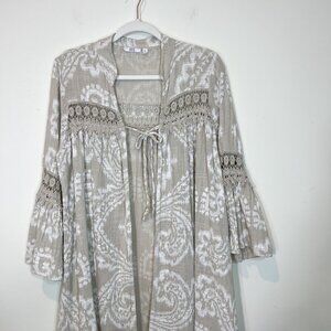 Kaktus Cardigan S Beige White Paisley Print Made in Italy Bell Sleeve Size Small