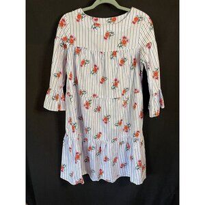 Great spring or summer dress by Kaktus size small. Tiered floral and stripes, bell sleeves, great cottage core vibe. Armpit to armpit 18.5”, length from shoulder seam to bottom hem 36”. Clean and crisp no stains.