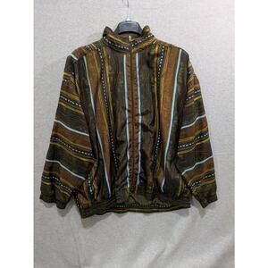 Make a statement with this vintage Kaktus boho-style jacket, featuring a vibrant multicolor design, full zip closure, and a cozy mock neck. A perfect mix of comfort and artistic flair!