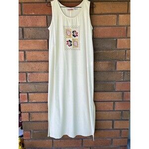 Kaktus Maxi Dress Embroidered A Line Silk Summer | Cream | Women's Size Small