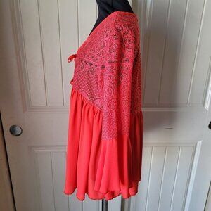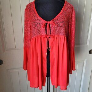 Kaktus Red Lace Boho-Style Open Front blousesize small