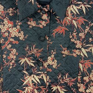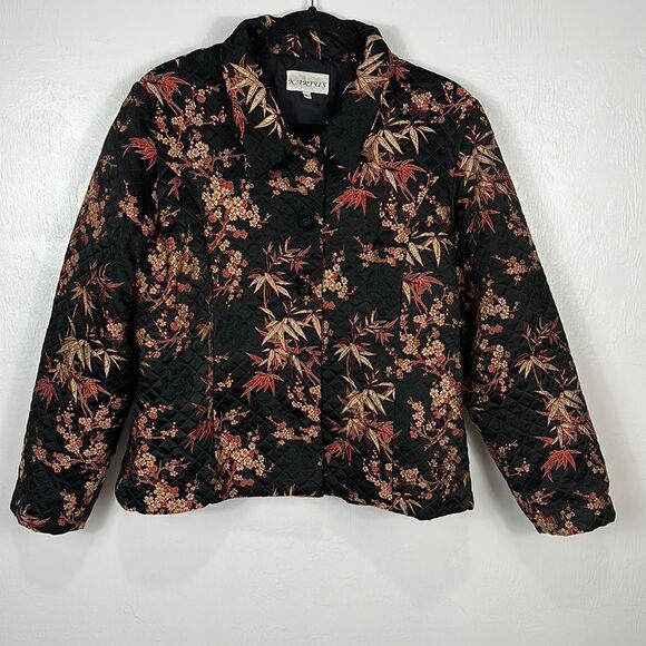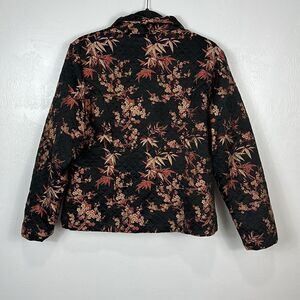 Kaktus Silk Black Floral Embroidery Quilted Button Front Jacket Size XL