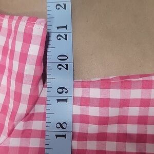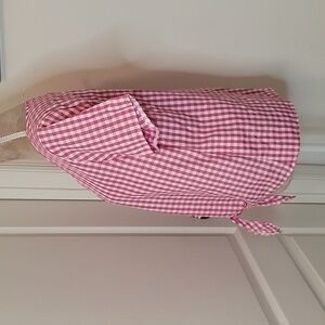Kaktus, Size M, NEW, Short Sleeve Raspberry and White Gingham Button Front Shirt. Ties at Waist. Please refer to measurements in photos to ensure proper fit.