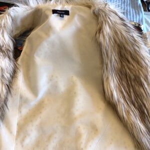 Kaktus Womens Cream/Brown Faux Fur Open Front Vest Size Medium. Excellent condition. From smoke free home.