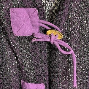 Women’s Kaktus Purple/Black Open-Weave Button Cover Up 3/4 Sleeves Boho-Chic Resort Wear Summer Vacation Fisherman toggle style buttons