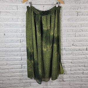 Kaktus Womens Skirt 2X Plus Pull On Green Black Animal Print Lightweight ANI44E