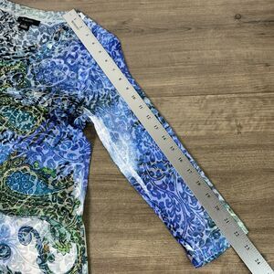 Description: Kaktus Women's Top Size Large Studded Blue 3/4 Sleeve Shirt V-Neck Lightweight