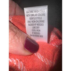 This Kaktus dress, designed for women, features a vibrant coral and white striped pattern. Blending linen and rayon, it offers breathability and comfort. This sleeveless design is perfect for warm weather, and the button details on the straps add a touch of elegance.