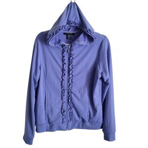 Kaktus Y2K Full Zip Hoodie Womens Size Small Periwinkle Blue Ruffle Pockets Boho
