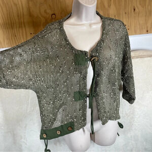 Kaktus open knit art to wear cardigan sweater green women’s small lagenlook