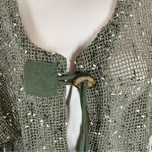 Kaktus open knit art to wear cardigan sweater green women’s small lagenlook