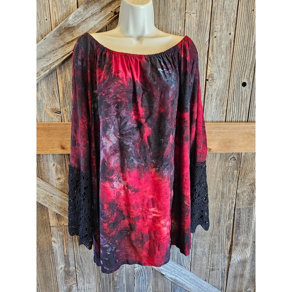Kaktus size 1X women's career casual loose fit blouse lace accent ^