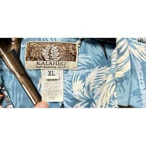 Kalaheo Camp Shirt Mens XL Vacation Blue USA Vintage War Planes Palm Trees