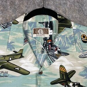 Kalaheo Fighter Bomber Airplanes II Hawaiian Beach Summer Military Camp Shirt L