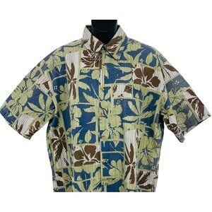 Kalaheo Hawaiian Aloha Shirt Medium Blue Brown Floral Short Sleeve Button Up EUC