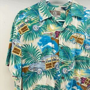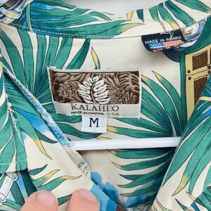 Kalaheo Hawaiian Shirt Palms Trees & Woodies Rayon Size Medium Made in Hawaii