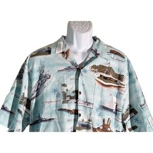 Kalaheo Hawaiian Shirt USS Aircraft Carrier Battleship WWII XL Men Button-Up USA