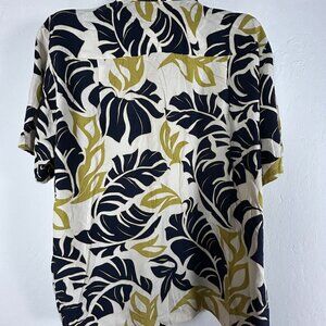 Kalaheo Mens Button Up Hawaiian Shirt Large Short Sleeve Tropical Leaf Print USA