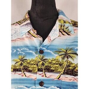 Kalaheo Mens XL Blue Hawaiian Print Short Sleeve Button Up Shirt Aloha Island