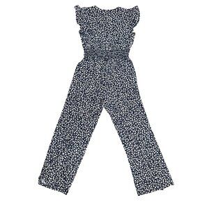 This Kaleigh jumpsuit offers an artful blend of style and comfort. Its navy and white floral pattern is both charming and versatile, fitting for many occasions. Adorned with delicate ruffle sleeves and a flattering V-neck, it provides a touch of femininity. The smocked waist ensures a comfortable, flexible fit, making it as practical as it is stylish.