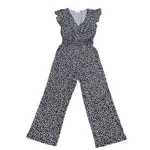 Kaleigh Womens Navy White Floral Jumpsuit Size M Womens V-Neck Ruffle Sleeve