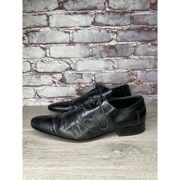 Kalena’s Black Leather Double Wingtip Lace Up Italy Dress Shoes Men 43EU/10M US