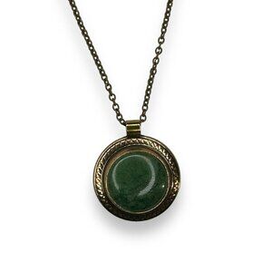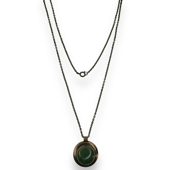 This vintage Kalevala Koru necklace features a striking green granite pendant set in bronze.