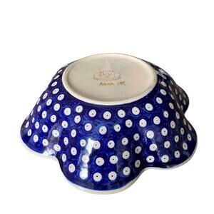 Kalich Handmade Poland Pottery Scallop Blue Bowl Serving Piece Anna numbered