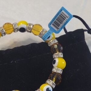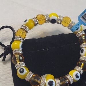 Kalifano Citrine Evil Eye Glass Bracelet with Cubic Zirconia Crystals NWT