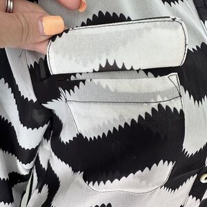 Kalijati White & Black Striped Long Sleeve Blouse Medium M Button Up NWOT.
