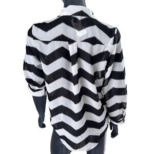 Kalijati White & Black Striped Long Sleeve Blouse Medium M Button Up NWOT