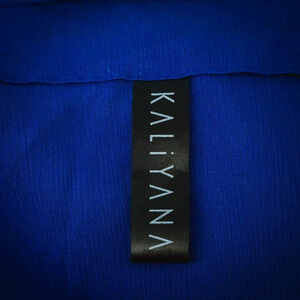 Kaliyana One Size Blue Short Sleeve One Button Front Oversized Relaxed Kimono Artsy Lagenlook Style Rayon Jacket Topper