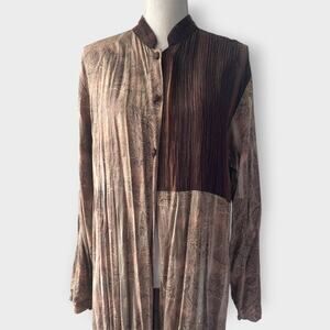 Kaliyana Overshirt Duster Patchwork Long Sleeve Lagenlook Layered Size M L High Neck Asymmetrical Folds Texture Wearable Art Art Wear Oversize Grunge Goth Rayon
