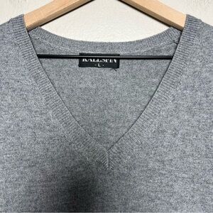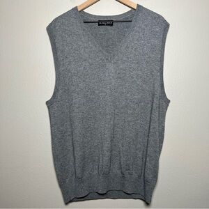 Kallspin Men Cashmere Sweater Vest Larg Gray Wool V-Neck Luxury Lightweight