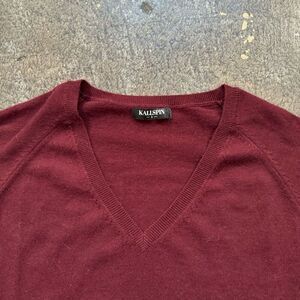 Kallspin Red V-Neck Cashmere Wool Blend Sweater Adult Size Small Preppy Winter