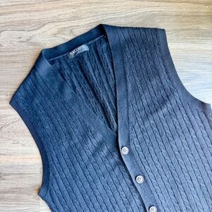 Kallspin Wool Black Button-Front Cable Knit Slim Sweater Vest Size M