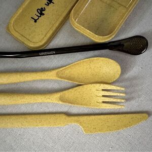 Kalmateh Wheat straw portable utensil kit with steel Gourd and case NWOT