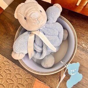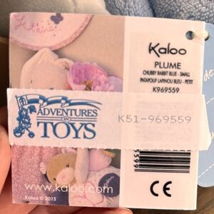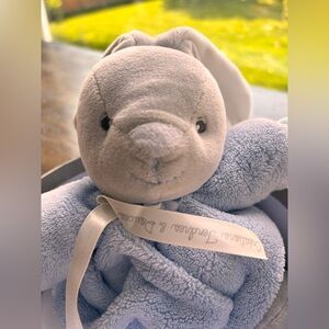 This charming stuffed bunny from Kaloo features a soft, plush design in calming gray and blue hues. Crafted with high-quality materials, this bunny promises comfort and durability. Ships with original box which still has tags attached.