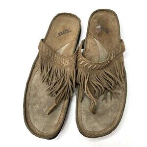 Kalso Earth Nature Brown Suede Fringe Thong Sandals Women's Size 11 Men's 9
