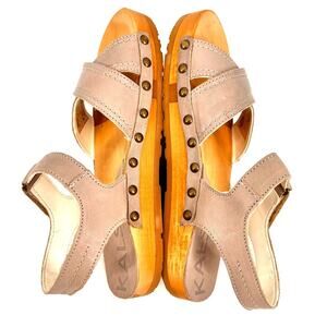 Kalso Earth Shoe “Serene” Leather Negative Heel Wooden Sandals