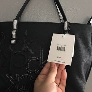 NWT Black Kalvin Klein hailey tote 👜. Attachable body strap included. Originally 119.50. Versatile, classic chic style.