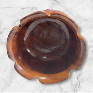Vintage Hand Carved Monkey Pod Wooden Tulip Flower Bowl MCM Boho Decor
