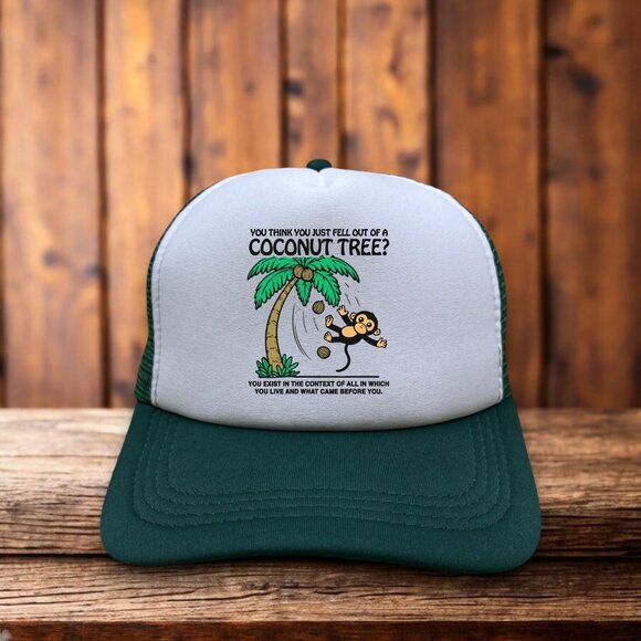 Kamala Harris Unisex Trucker Hat Green Coconut Tree Meme Funny Gift Tim Walz Cap
