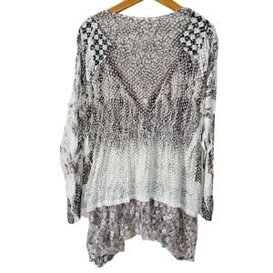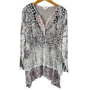 Kamana Animal Print Burn Out Sheer Tunic Layered Lace Lagenlook Bohehiman 3X