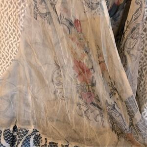Chest 36” Length 34” Kamana Tunic Sweater Arms Cardigan Flowers & Butterflies Sheer Print Sz Small NWOT Gorgeous so feminine