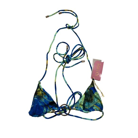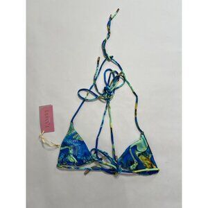 Description from retailer: The sky's the limit for styling this blue tropical print classic Triangle Tie Top with a twist. Make the look your own with unique ways to tie this spunky top. The String Tie Bottoms complete a classic pairing or create a new look with any of our bottoms.