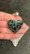 Pendant of a green kambaba jasper stone in a 925 silver plated heart shaped frame.