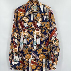Kamehameha Multicolor All Over Print Hawaiian Button Up Shirt Size Medium