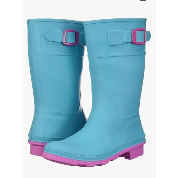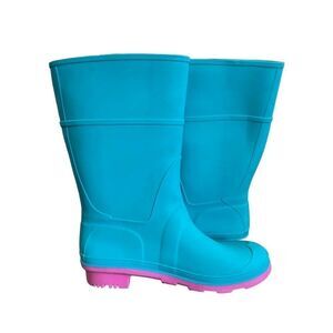 Kamik Girls 3 Raindrops Turquoise Pink Rubber Rainboots Wellies