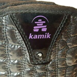 Kamik Waterproof Rain Boots Black & Gray Insulated Shaft Zip Up Back Sz 7 Eur 8